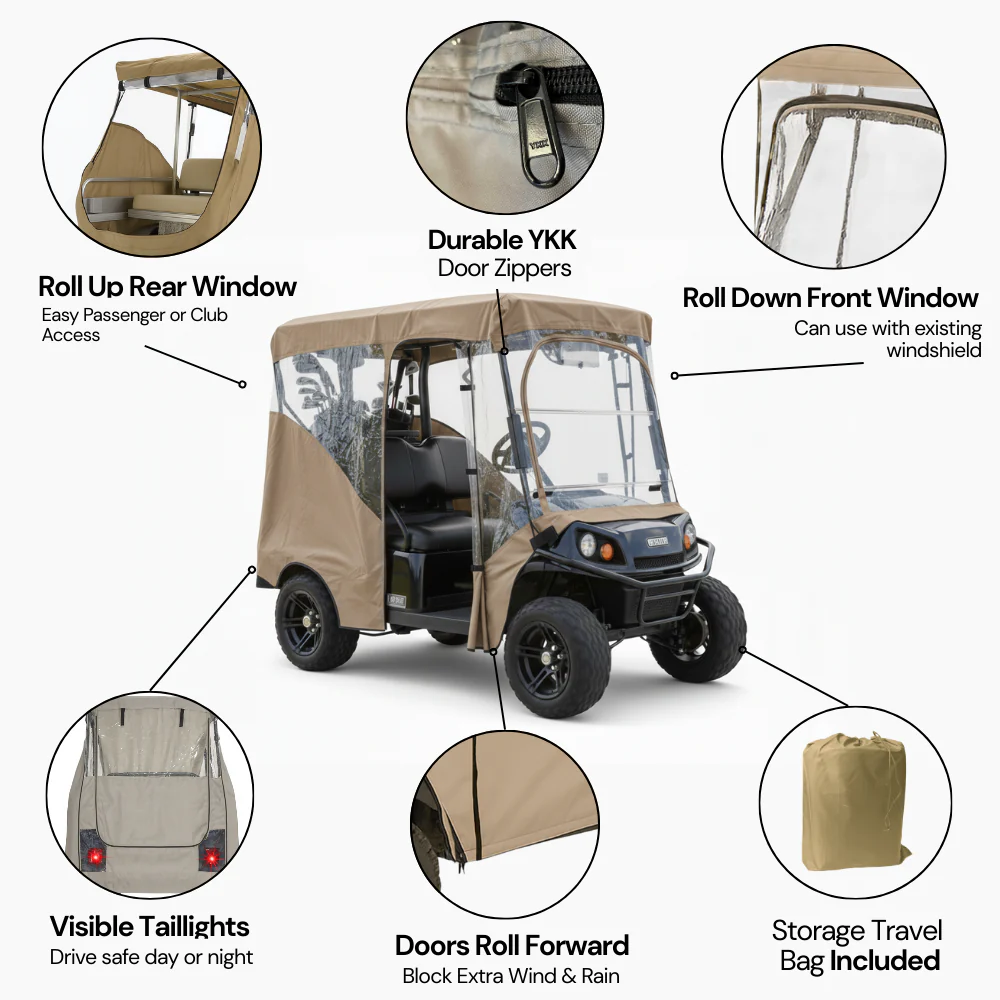 4 Seater Golf Cart Enclosure for 80 Inch Long Roof – Taupe Rain and Winter Driving Cover