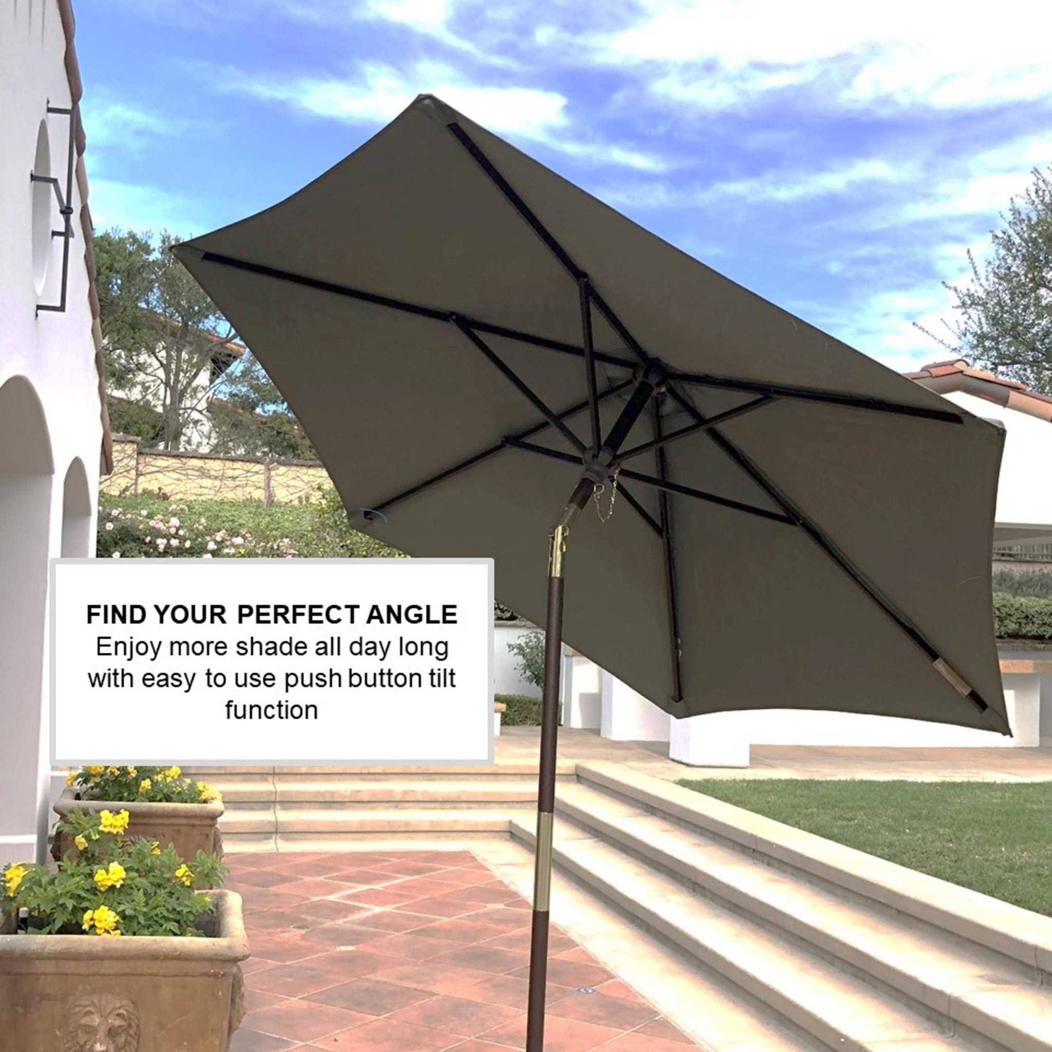 Add style and shade to your patio with our 7ft wooden crank and tilt market umbrella.