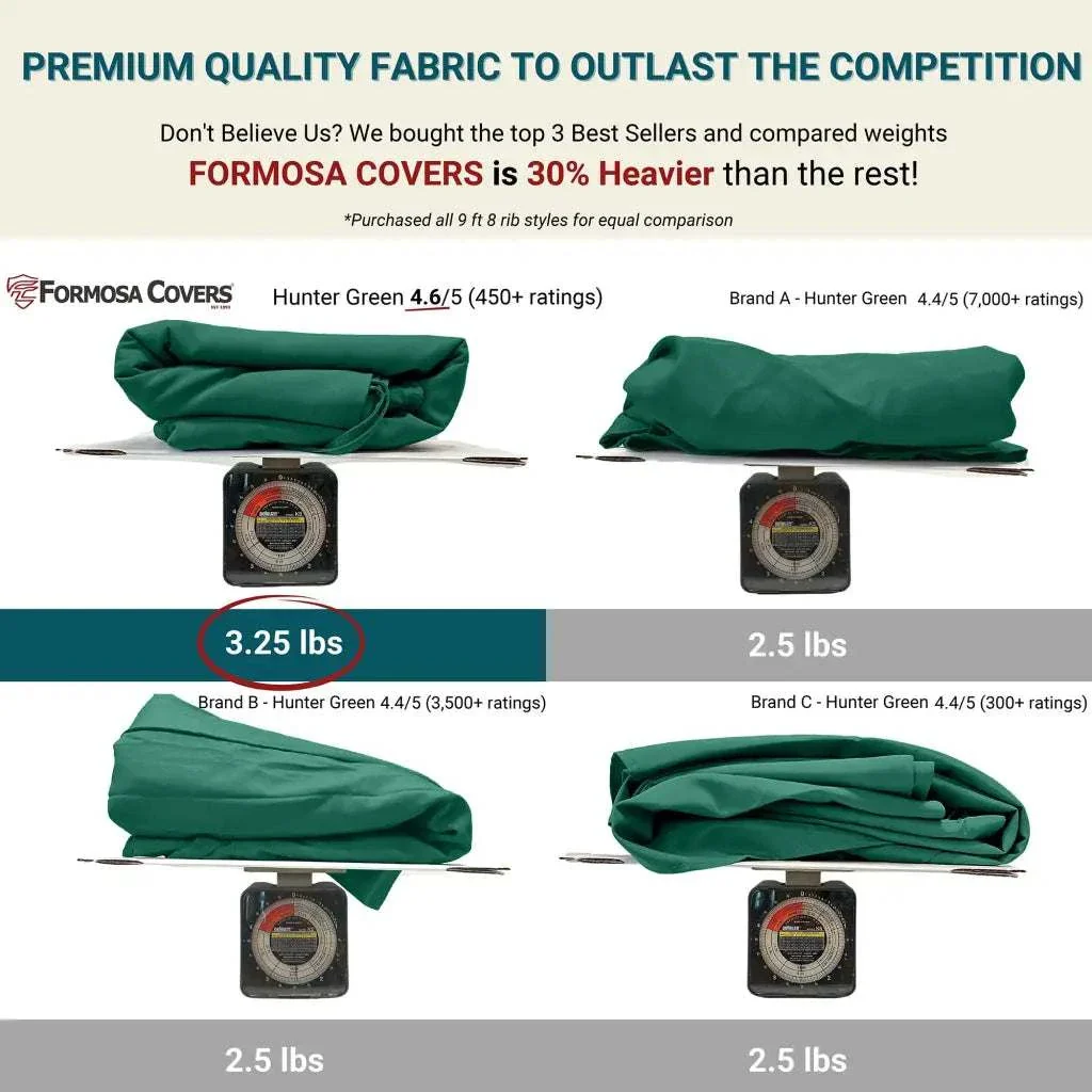 1. BUILT 50% HEAVIER THAN THE STANDARD | 600-denier polyester construction at 270 GSM, UV-treated and water-repellent, engineered to hold color and resist moisture through years of full outdoor exposure, not just one season.