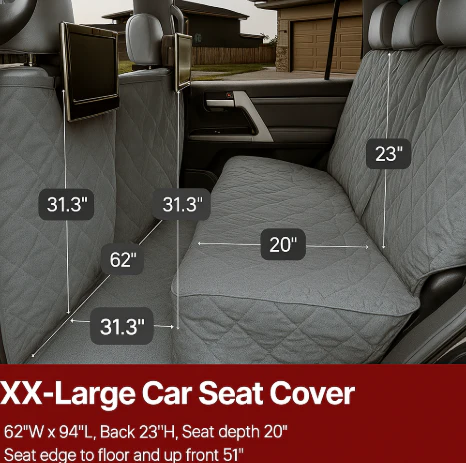 You have to try our XXL Pet Seat Cover designed to be the largest pet seat cover available in the market. It provides more coverage than any other available car seat cover for dogs and other furry companions.